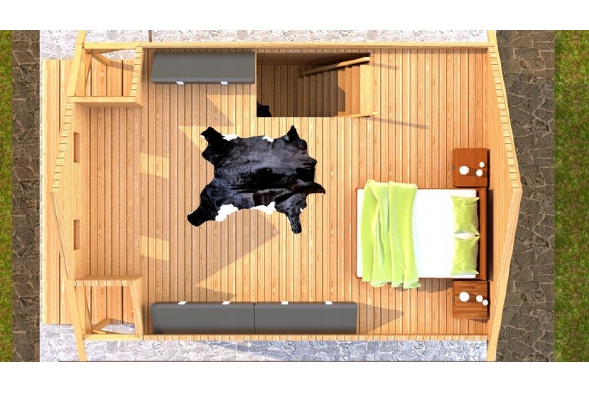 Ściany i dach wykonane są z desek pióro-wpust o grubości 20 mm, starannie struganych i szlifowanych, wolnych od pęknięć i dziur. Możliwe jest dostosowanie grubości desek do indywidualnych preferencji.